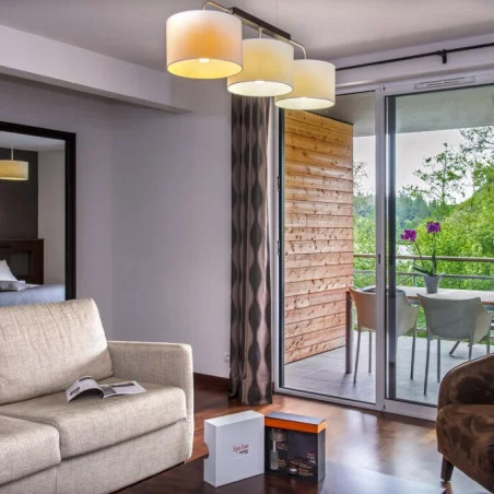 Les lodges, parfaits pour les séjours en famille ou entre amis, offrent plusieurs chambres, un salon, une cuisine équipée, une salle de bain et une terrasse ou un balcon avec vue.