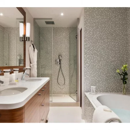 Les suites, idéales pour les séjours prolongés ou les occasions spéciales, disposent d’une chambre séparée, d’un salon spacieux, d’une literie King Size et de produits de toilette premium. Certaines suites bénéficient également d’une terrasse privée offrant une vue panoramique.