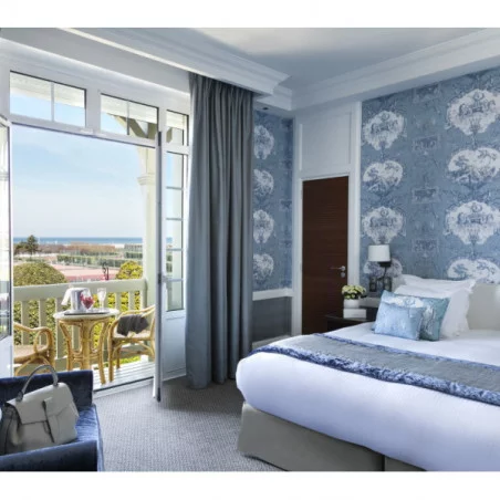 Les chambres deluxe offrent un espace plus généreux avec un coin salon, une vue sur la mer ou sur le centre de Deauville et des équipements supplémentaires comme une machine à café.