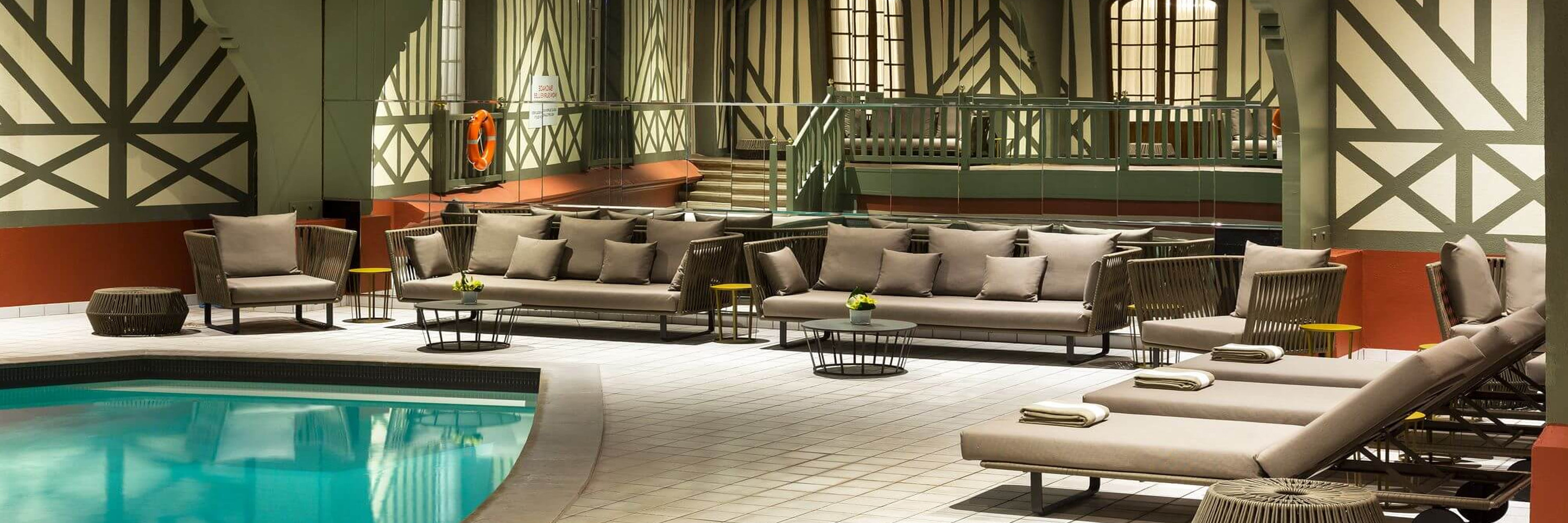 Services bien-être : Les clients peuvent profiter du spa Diane Barrière avec sauna, hammam, soins personnalisés et une piscine intérieure chauffée.