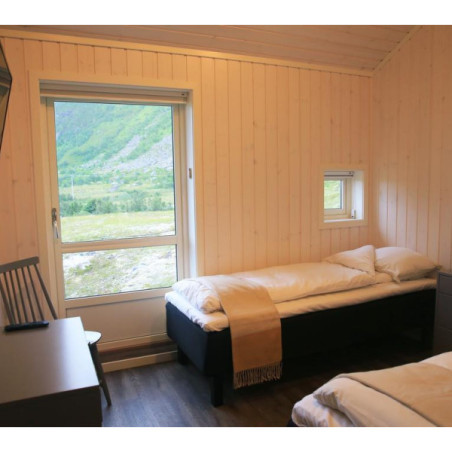 Les lodges, conçus dans un style scandinave moderne, allient élégance, confort et intimité. Chaque unité peut accueillir jusqu’à six personnes et comprend trois chambres, une cuisine entièrement équipée, un vaste salon avec cheminée, ainsi qu’une terrasse avec vue imprenable sur le littoral. L’ambiance chaleureuse du bois naturel et les grandes baies vitrées permettent de profiter pleinement de la lumière arctique, que ce soit sous le soleil de minuit ou les aurores boréales.