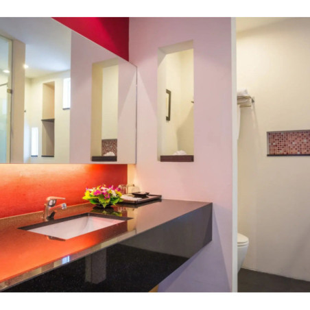 Le Tinidee Golf Resort Phuket offre une expérience haut de gamme particulièrement adaptée aux amateurs de golf souhaitant séjourner à proximité immédiate du prestigieux parcours de Blue Canyon. Les chambres spacieuses et élégantes combinent confort moderne et décoration soignée, tandis que les installations — piscine, spa, centre de fitness — répondent parfaitement aux attentes des voyageurs en quête de détente et de bien-être.