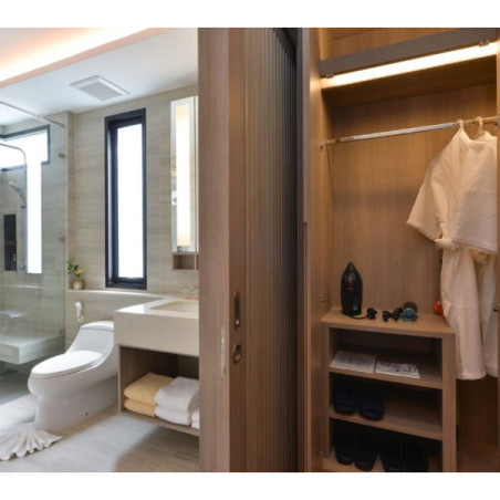 Les chambres, suites et villas du Tinidee Golf Resort allient modernité et élégance dans un décor sobre et chaleureux. Chaque logement est équipé de la climatisation, d’une connexion Wi-Fi haut débit gratuite, d’une télévision à écran plat, d’un minibar et d’une salle de bains privative avec articles de toilette de qualité. Certaines chambres bénéficient d’un balcon ou d’une terrasse privée, offrant une vue panoramique sur les parcours de golf, les jardins luxuriants ou la piscine extérieure.
