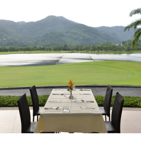 42 Moo 5 Vichitsongkram Road, Phuket - 83120 - ThailandeLe Tinidee Golf Resort Phuket est un hôtel haut de gamme idéal pour les amateurs de golf, situé près du prestigieux parcours Blue Canyon. Il propose des chambres élégantes et confortables, une piscine, un spa et un centre de fitness. La restauration mêle cuisine thaïlandaise et internationale, servie par un personnel professionnel et attentif. Ce resort offre un cadre paisible, parfait pour un séjour détente, même si les plages animées sont un peu éloignées.