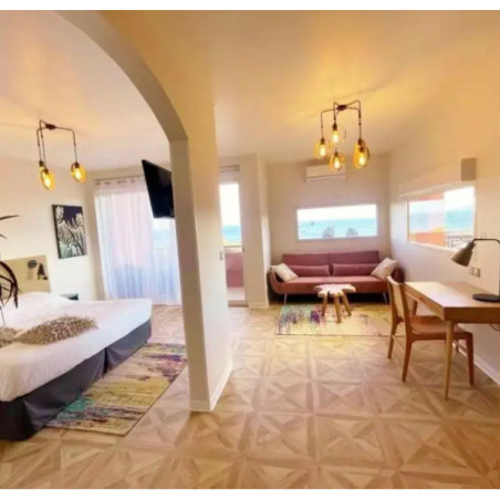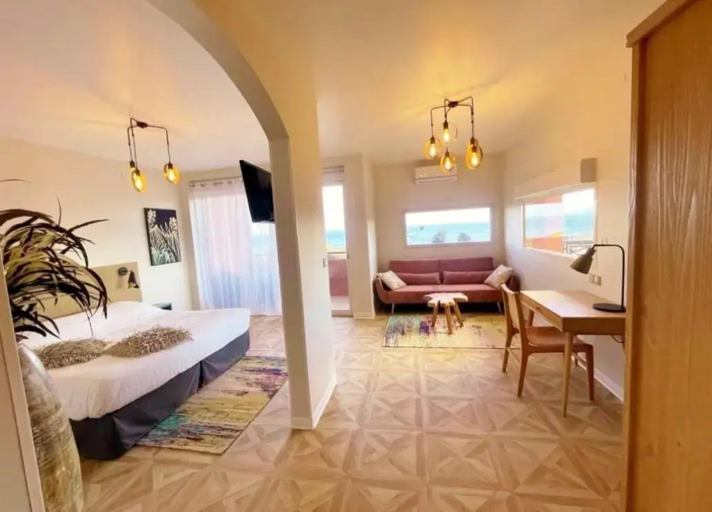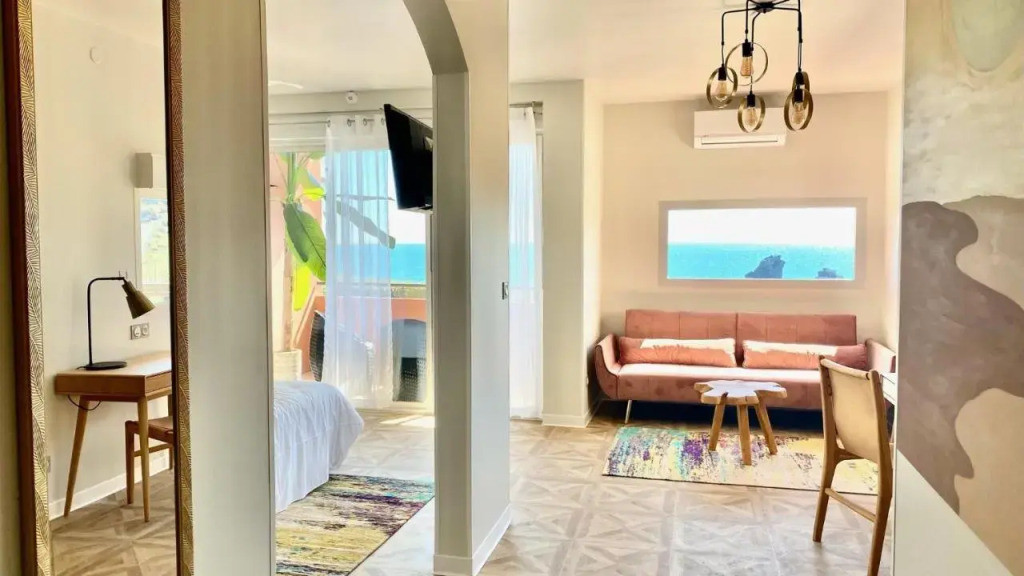 Installé sur un promontoire, l’hôtel offre une vue imprenable sur la Méditerranée et les formations volcaniques environnantes, un panorama particulièrement apprécié des clients L’ambiance y est paisible, propice à la détente, tout en étant proche des port, restaurants et commerces (environ 5 à 10 minutes à pied)