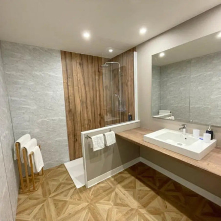 Les services incluent un parking privé sécurisé (en supplément, environ 20 € par jour), borne de recharge pour véhicules électriques, accessible aux personnes à mobilité réduite, ainsi qu’un petit salon ou bibliothèque et une terrasse ensoleillée pour se détendre Le personnel multilingue est disponible 24h/24, et l’accueil est souvent qualifié de très chaleureux et professionnel.