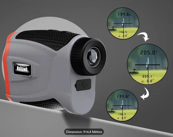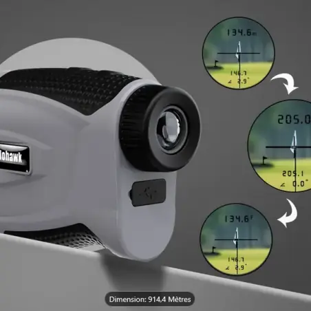 Télémètre Laser de 914,4 mètres avec Aimant et Verrouillage du Drapeau à Fonction Vibration pour Golfeurs en Extérieur, Poignée Ergonomique, Gadget Portable, Attachement Optique Haute Précision, Affichage en mètres ou en Yards.