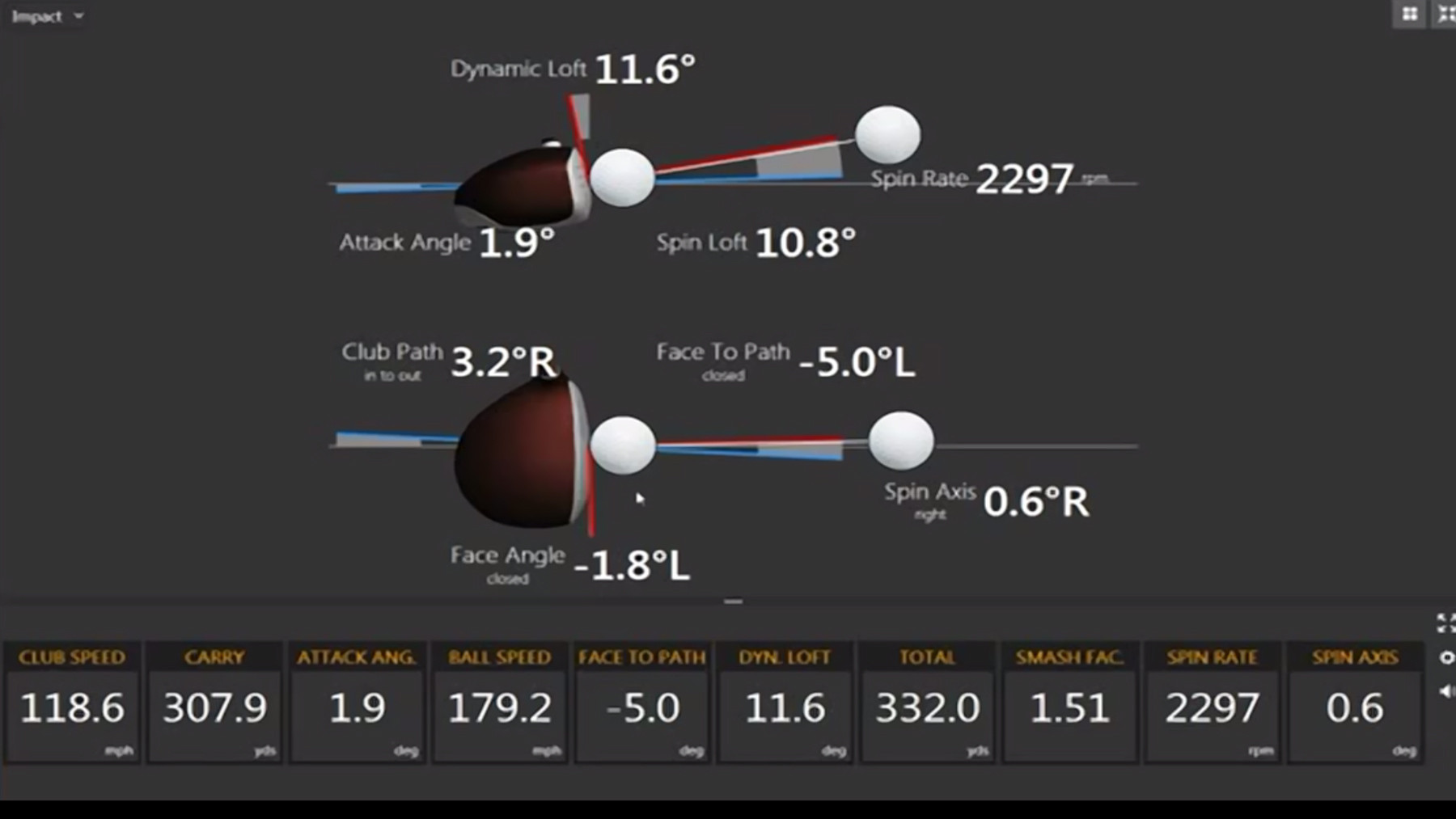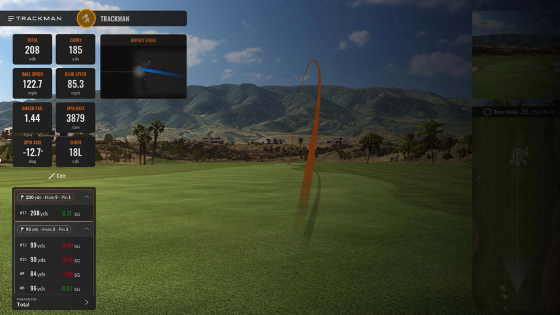 Analyse TrackMan 4 avec plus de 20 paramètres mesurés en temps réel pour une lecture fine du swing et du comportement du matériel.