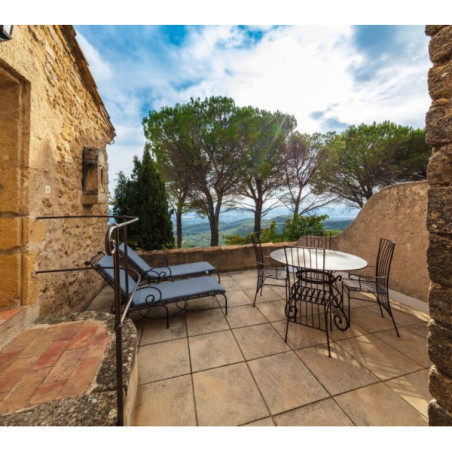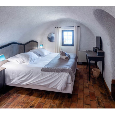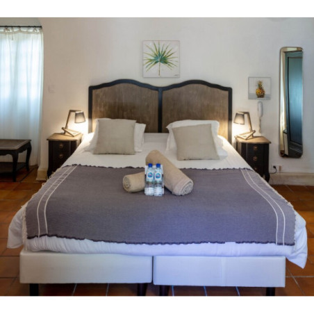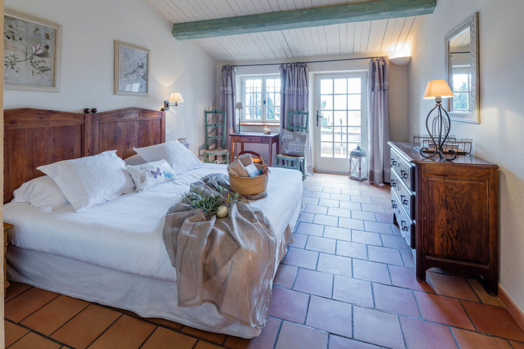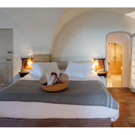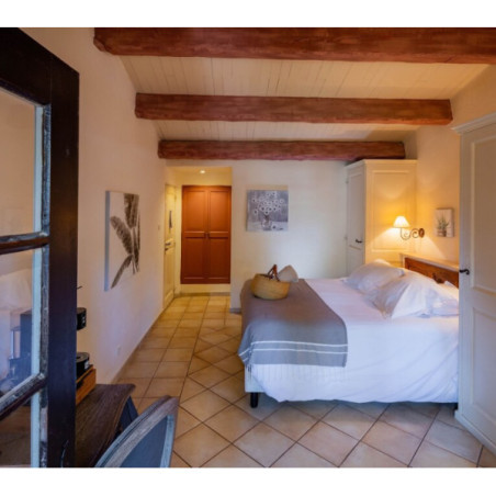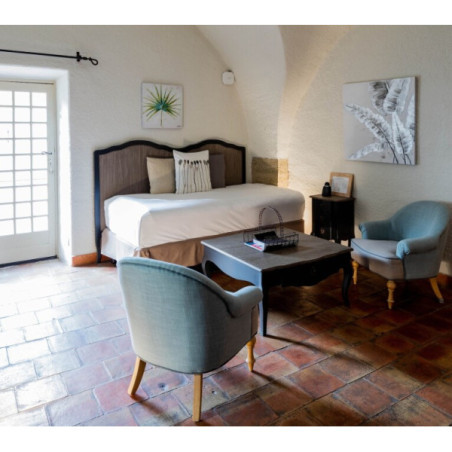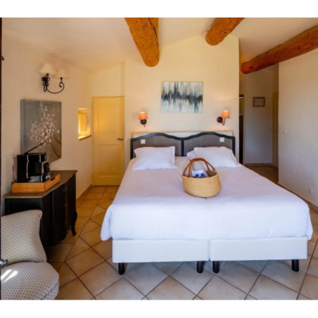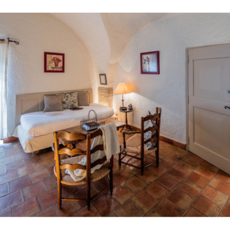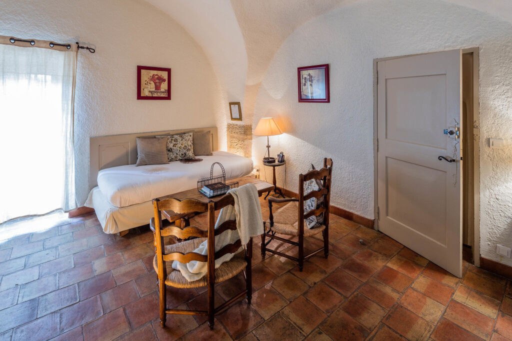 Les chambres et suites (de la Chambre Classique à la Suite Duplex) sont réparties dans les anciens appartements des moines cisterciens. Chaque pièce possède une décoration unique, alliant sobriété romane et touches provençales (cheminée, pierre, bois), et dispose de terrasse ou balcon selon la catégorie.