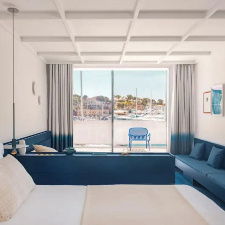 Ses chambres lumineuses, décorées avec goût, offrent pour la plupart une vue imprenable sur la mer. Chaque espace allie design et confort : literie haut de gamme, terrasse privative, salle de bain moderne et équipements premium (Wi-Fi, climatisation, TV écran plat, coffre-fort). Certaines suites disposent d’un jacuzzi privatif ou d’un balcon donnant sur le port de Sausset.