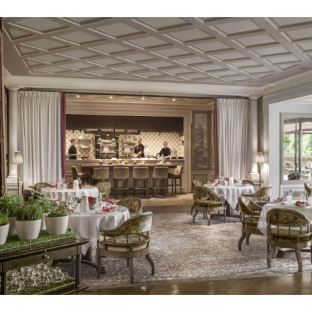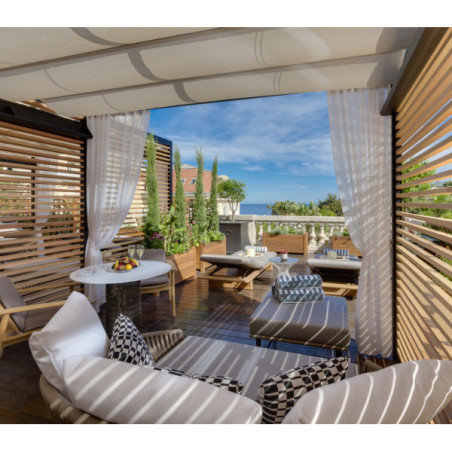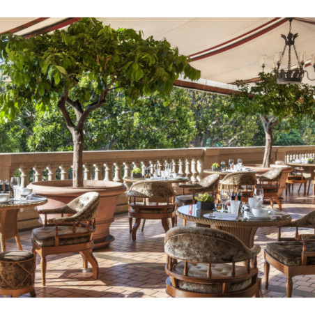 Les chambres et suites, signées Jacques Garcia, marient élégance classique et confort moderne. Draperies nobles, boiseries précieuses et tons chaleureux créent une atmosphère intime et feutrée. Les suites offrent des terrasses privées avec vue sur la mer, les jardins ou le Casino de Monte-Carlo. Chaque détail y exprime la perfection : literie exceptionnelle, technologie discrète, service majordome et salles de bain en marbre.