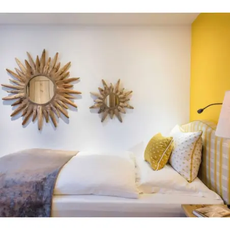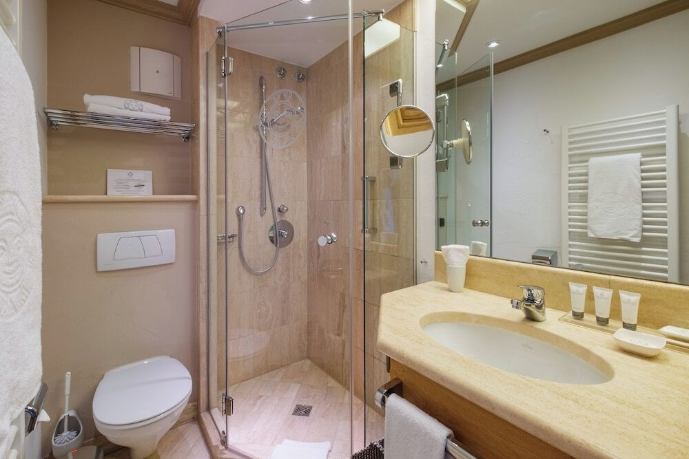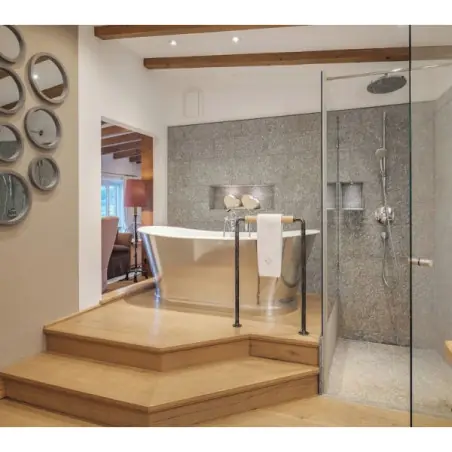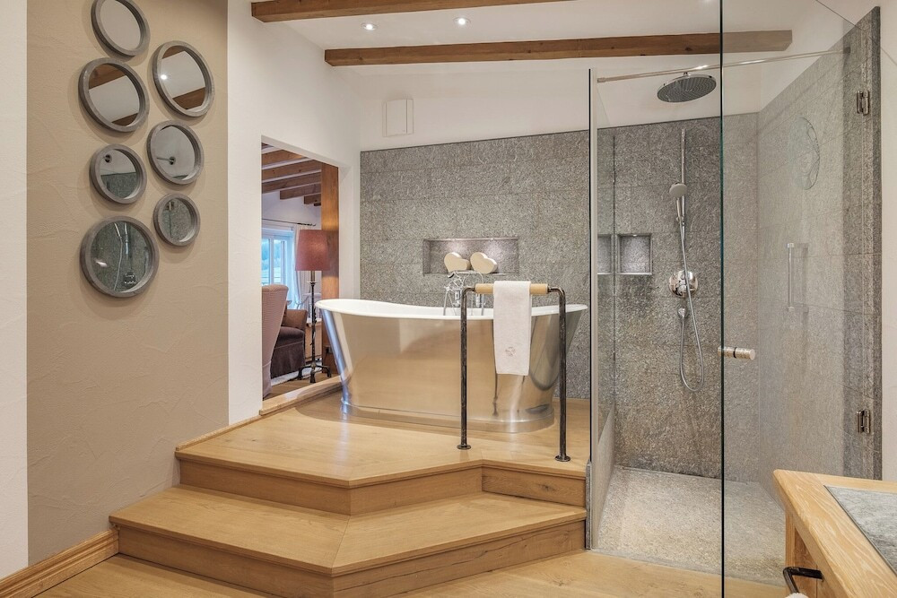 Certaines suites offrent une terrasse privée avec vue sur les montagnes, d’autres un jacuzzi panoramique ou une cheminée intimiste.