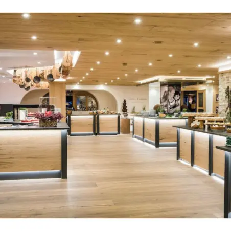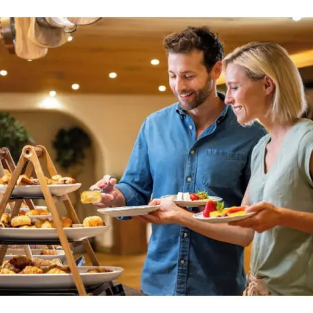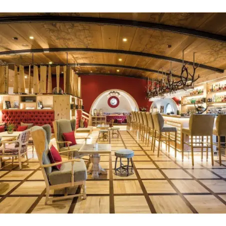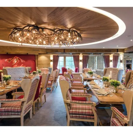 Le Club House, alliant architecture alpine et élégance contemporaine, offre une atmosphère chaleureuse et raffinée. Son restaurant gastronomique sert une cuisine régionale moderne, sublimant les produits du terroir et les vins autrichiens et allemands.