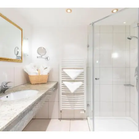 Les suites premium offrent un confort supérieur : coin salon, cheminée, salle de bain spacieuse avec baignoire, et parfois un jacuzzi privatif.