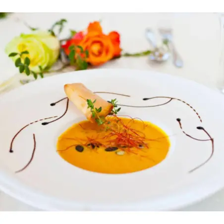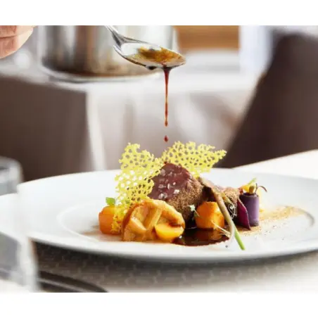 Les plats sont préparés à base de viandes du terroir, poissons de montagne, fromages d’alpage et vins allemands de caractère.