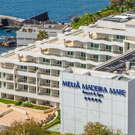 Le Meliá Madeira Mare est un hôtel 5★ moderne situé en front de mer dans le quartier du Lido à Funchal, offrant une vue panoramique sur l’océan Atlantique. Il propose des chambres spacieuses, un spa complet, deux piscines, une cuisine raffinée et un accès direct à la promenade maritime. Idéal pour un séjour golf à Madère, il se trouve à courte distance des golfs de Palheiro et Santo da Serra, tout en offrant une atmosphère élégante, relaxante et confortable pour profiter pleinement du climat doux de l’île.