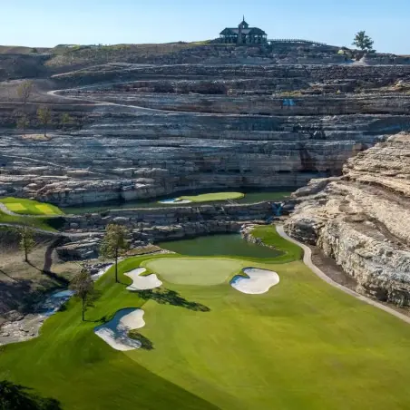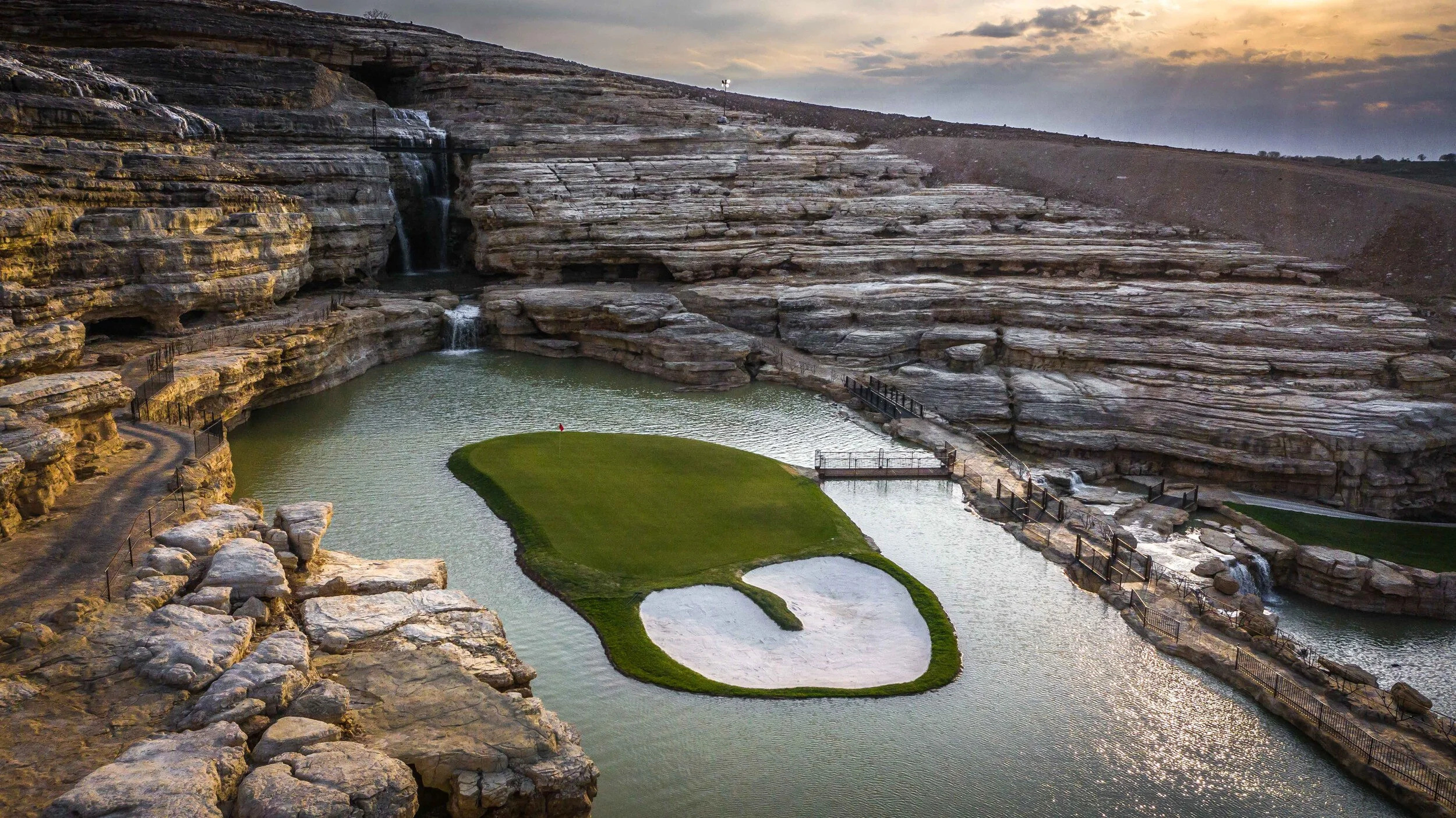 Véritable signature du parcours, ce trou bonus est posé au milieu d’un canyon d’eau turquoise, entouré de murs rocheux vertigineux. On y accède ensuite par un chemin sculpté dans la falaise, offrant une dernière expérience spectaculaire. Ce 19e trou est devenu l’un des plus photographiés au monde.