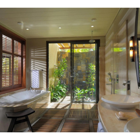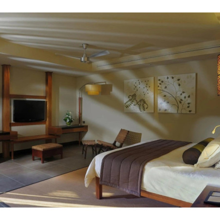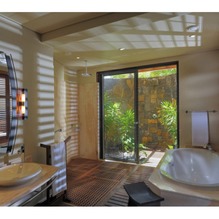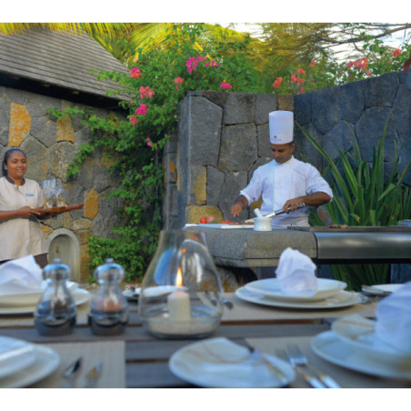 Les suites et villas, disséminées dans la végétation, garantissent calme, intimité et espace. Les catégories supérieures disposent de piscines privées et de larges terrasses ouvertes sur les jardins ou le lagon. L’architecture contemporaine, inspirée de l’art de vivre mauricien, privilégie les matériaux naturels et une parfaite intégration dans l’environnement.