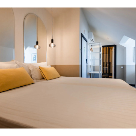 Les chambres sont décorées avec sobriété et élégance, dans le respect du style historique du bâtiment. Elles offrent un confort soigné avec literie de qualité, climatisation, Wi-Fi et espaces lumineux. Certaines chambres bénéficient de vues sur la place ou sur les toits de la ville, renforçant le charme du séjour.