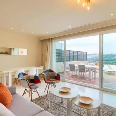 Les appartements sont spacieux, modernes et parfaitement équipés. Ils disposent de grandes terrasses offrant des vues imprenables sur la Méditerranée et parfois sur le parcours de golf. Les espaces de vie sont lumineux, confortables et pensés pour un séjour en toute autonomie, que ce soit en couple, entre amis ou en petit groupe.