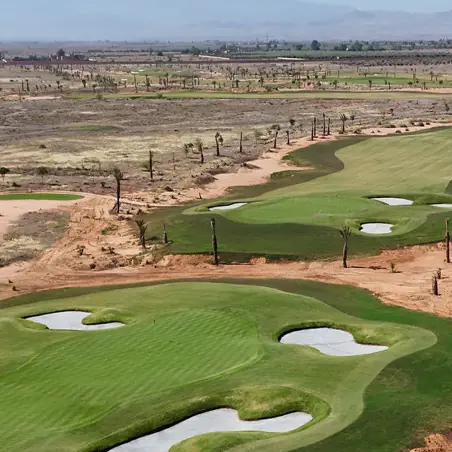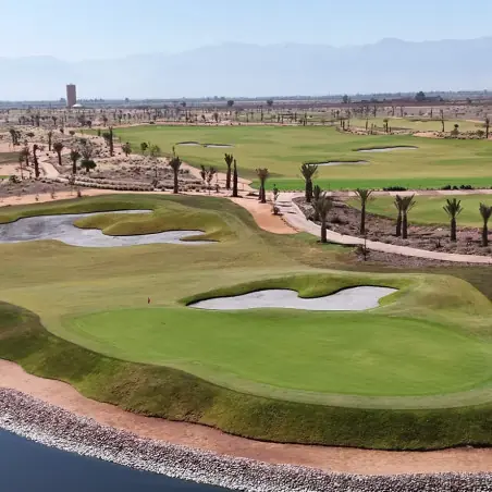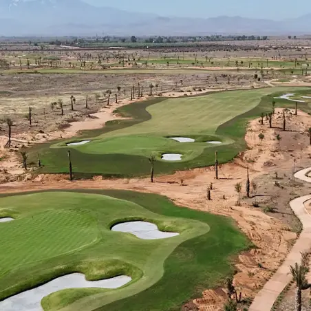 Akenza Golf est un parcours 18 trous Par 72 situé à une quinzaine de minutes du centre de Marrakech. Inspiré des paysages désertiques de l’Arizona, il offre un tracé spectaculaire entre zones arides, obstacles naturels et larges perspectives sur l’Atlas. Le parcours séduit par son design contemporain, son entretien soigné et son équilibre entre défi technique et plaisir de jeu, accessible aussi bien aux amateurs qu’aux joueurs confirmés.