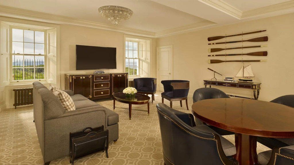 L’hôtel Trump Turnberry propose des chambres et suites luxueuses, décorées avec élégance dans un style mêlant tradition écossaise et confort contemporain. Les espaces sont vastes, lumineux et raffinés, avec des vues imprenables sur la mer ou les parcours. Le niveau de service est irréprochable, répondant aux standards les plus élevés de l’hôtellerie de luxe internationale.
