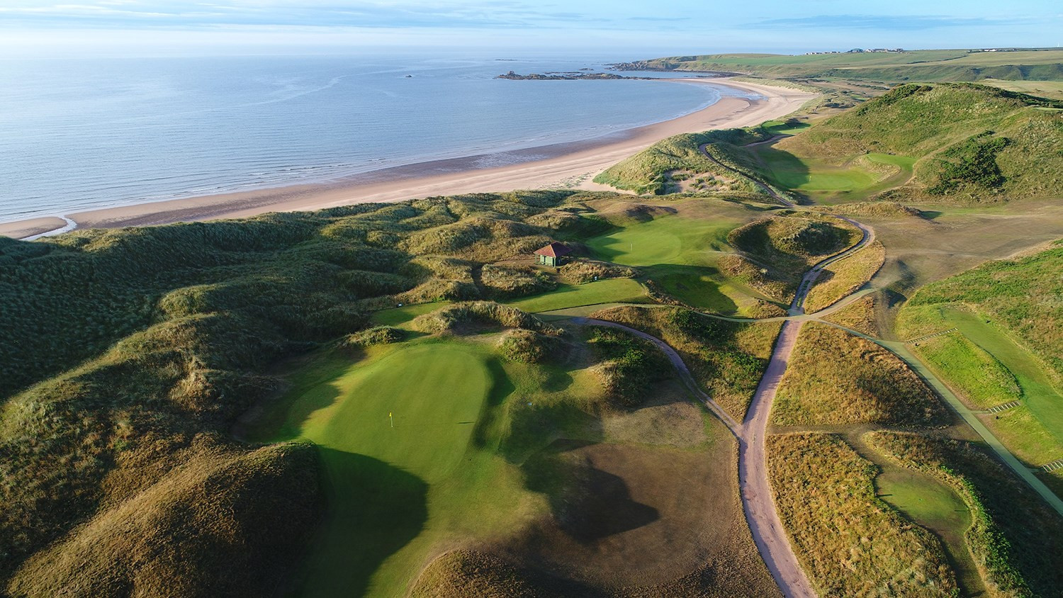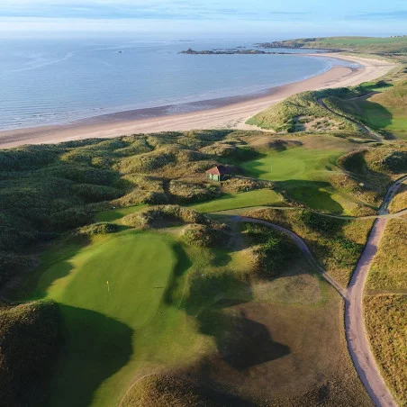 Le terrain de Cruden Bay est enchâssé au milieu de dunes de sable massives et ondulantes, créant un cadre côtier incomparable. Son histoire remonte à 1791, lorsque le Cruden Bay Golf Club a été fondé à Port Errol. Le parcours a déménagé vers son emplacement actuel au cœur des dunes en 1899. L'architecte Tom Simpson, renommé pour son travail sur de nombreux parcours européens, a tracé le parcours original de Cruden Bay. Utilisant seulement une pioche, une pelle et beaucoup de travail acharné, il a façonné chaque trou pour s'intégrer harmonieusement au paysage naturel, créant ainsi un chef-d'œuvre golfique unique.