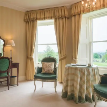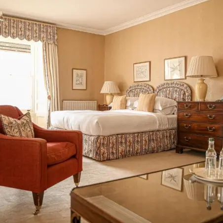 Les chambres et suites, toutes différentes, marient harmonieusement mobilier d’époque, tissus nobles et confort moderne. Les volumes généreux, la lumière naturelle et les vues sur les jardins ou la campagne environnante créent une ambiance chaleureuse et reposante. Chaque espace invite à la détente, dans un esprit très « maison de campagne écossaise ».