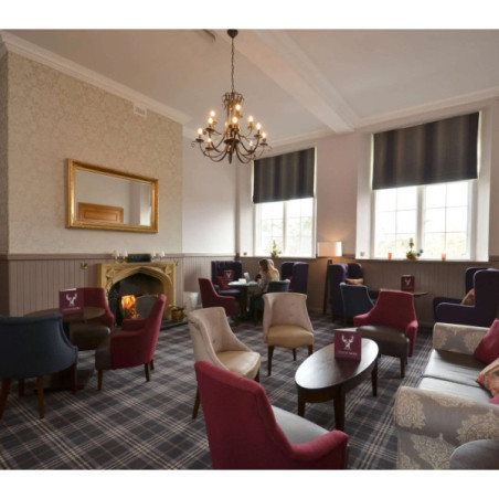 L’architecture et les espaces intérieurs reflètent le riche passé du bâtiment, avec de hauts plafonds, de vastes couloirs et une atmosphère typiquement écossaise. Le style classique est subtilement complété par des aménagements modernes, offrant un équilibre harmonieux entre tradition et confort contemporain.
