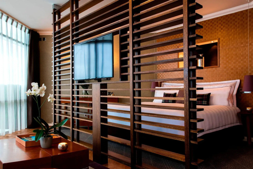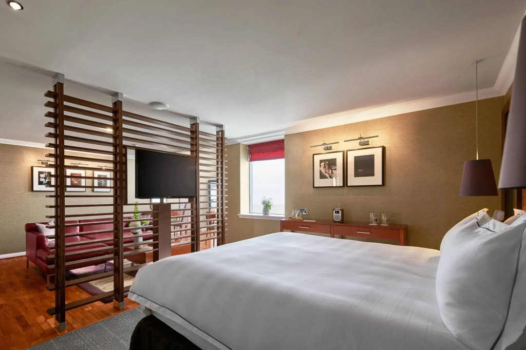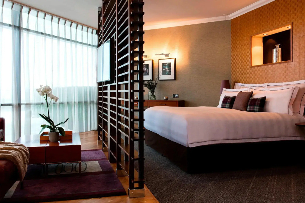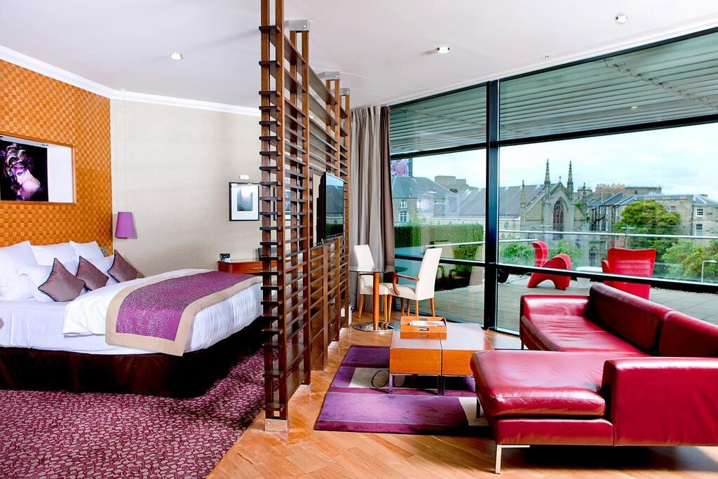 Les chambres et suites offrent un niveau de confort haut de gamme, avec une décoration contemporaine soignée, des volumes généreux et une grande luminosité. Certaines chambres disposent de terrasses privées ou de vues dégagées sur la ville. Les équipements modernes, la literie de qualité et l’ambiance feutrée font du Glasshouse un lieu idéal pour se reposer après une journée de visites ou de golf dans la région d’Édimbourg.