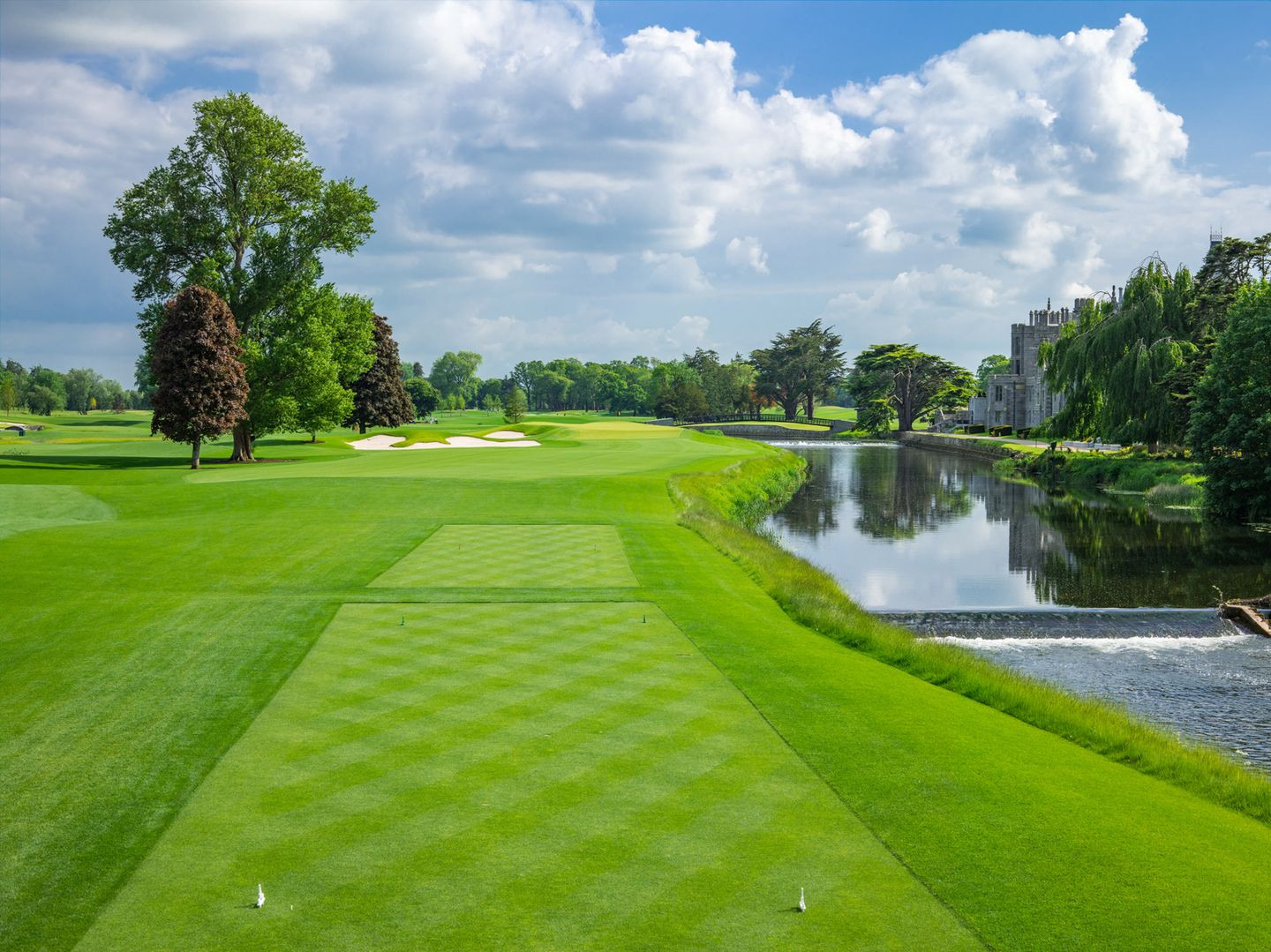 Le tracé du parcours se distingue par une mise en scène remarquable et un sens aigu de la stratégie. Chaque trou a été pensé pour offrir plusieurs options de jeu, s’adaptant aussi bien aux joueurs confirmés qu’aux golfeurs de très haut niveau. Les fairways ondulants, les greens vastes et rapides, les bunkers sculptés avec précision et les nombreux obstacles d’eau créent un équilibre parfait entre challenge technique et plaisir visuel. La rivière Maigue serpente à travers le parcours, ajoutant une dimension stratégique et esthétique unique.