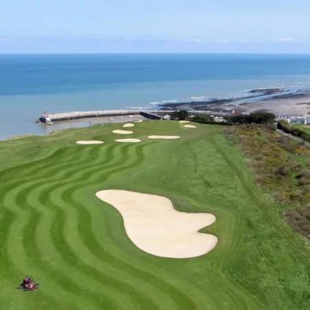 Au cœur de la magnifique région normande, le Golf d’Omaha Beach vous convie à une expérience golfique exceptionnelle. Avec ses deux parcours distincts, vous découvrirez des panoramas époustouflants entre terre et mer. Le parcours « La Mer » offre une vue imprenable sur la mer et le charmant village de Port-En-Bessin, tandis que le parcours « Le Manoir » vous plonge dans un décor vallonné et boisé, agrémenté d'étangs et de verdure, typique de la Normandie.