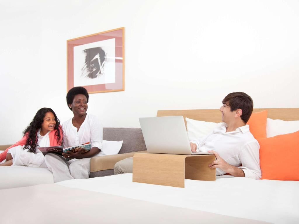 - Chambre Familiale : Cette chambre est conçue pour les familles, avec un lit double et un canapé convertible. Elle dispose d’un espace plus vaste pour accueillir confortablement jusqu'à quatre personnes, avec des équipements adaptés aux besoins des familles.