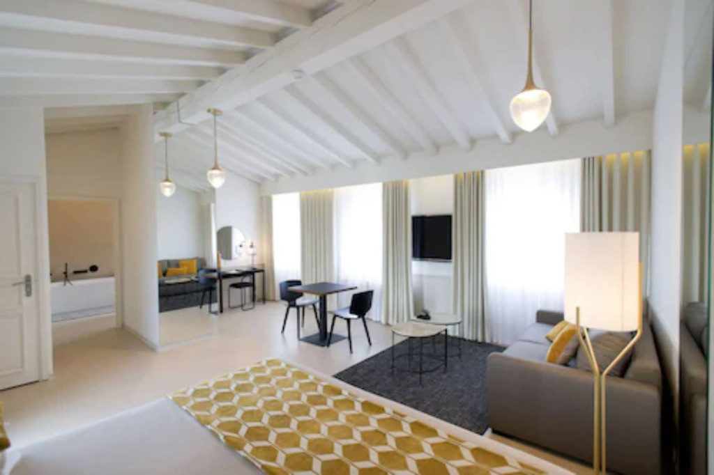 Chambres situées dans le bâtiment principal de l’hôtel, au cœur de la citadelle médiévale. Décoration contemporaine et épurée, alliant modernité et charme historique. Vue sur les remparts, la ville ou le jardin de l’hôtel. Équipements : climatisation, literie haut de gamme, télévision, Wi-Fi, minibar.