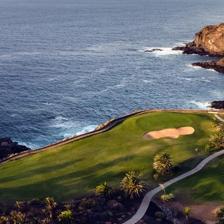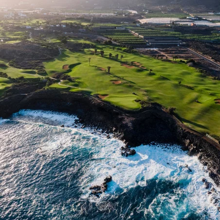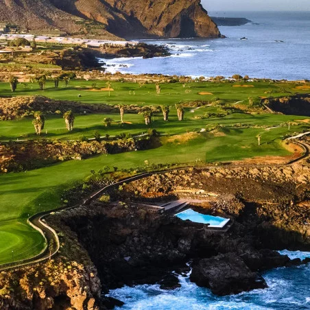 Au nord-ouest de Tenerife, le Buenavista Golf est niché entre l'océan Atlantique et la chaîne de montagnes du Teno, offrant un cadre naturel spectaculaire pour les passionnés de golf. Inauguré par Severiano Ballesteros en octobre 2003, ce parcours de 18 trous est une création unique qui met en valeur la beauté brute de Tenerife.
